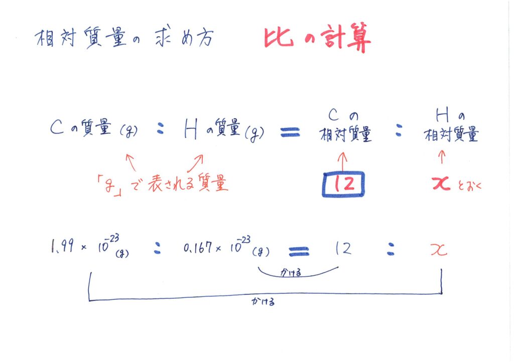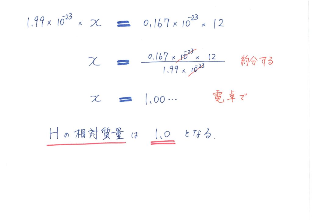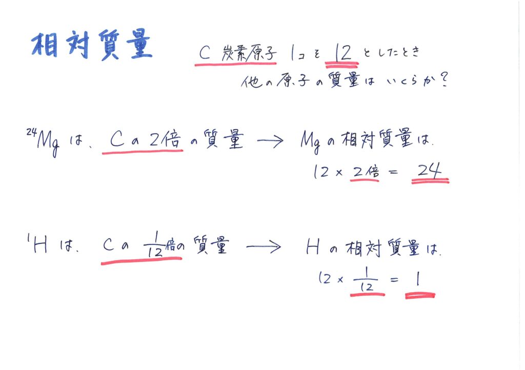 他の原子でも同じように0が続くので,わかりやすく表すために相対質量を使います。